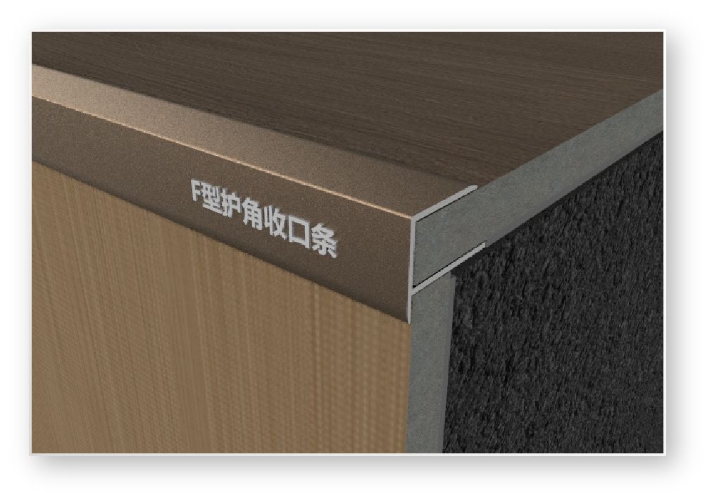 F型护角收口条,用于瓷砖边角装饰保护。安装简单,无需倒角与额外填缝,防止日常碰撞造成瓷砖崩角掉瓷,轻松打造质感金属边角,使家居空间更具时尚现代感。