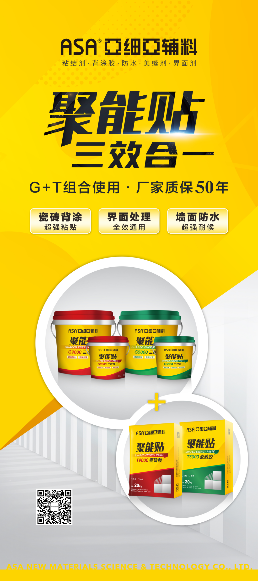室内外瓷砖铺贴,亚细亚聚能贴全效通用。在性能上,它的强度高于普通单组份瓷砖背涂胶的2-5倍之多,轻松满足低吸水率、大规格瓷砖、仿古砖、大理石、花岗岩等产品铺贴。除此之外,这款产品具备瓷砖背涂、界面处理、墙面防水三效合一,即刷即贴,省时高效。搭配聚能贴瓷砖胶,使用效果更佳。严格遵守亚细亚施工流程,G+T组合使用质保可达50年。