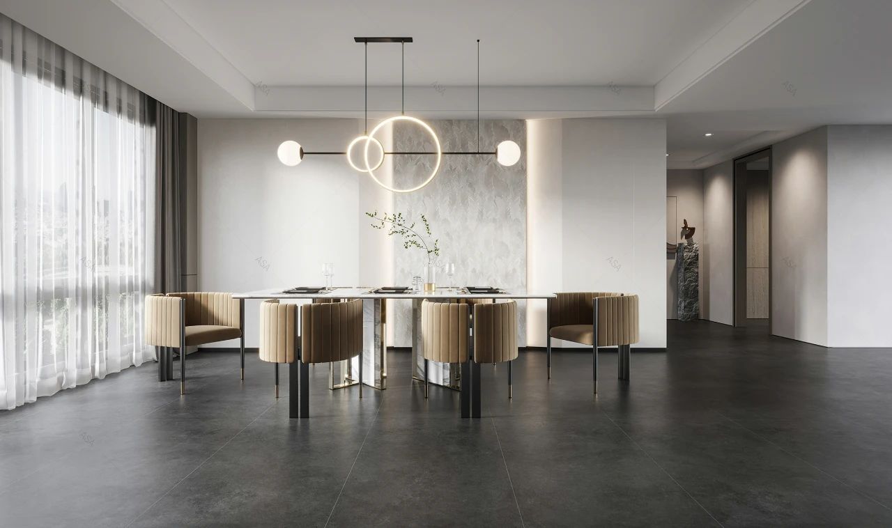 想打造开放式格局,就需要将客厅、厨房、餐厅之间的隔断通通去掉,选750*1500mm系列瓷砖全屋通铺才是彻底收获显大又通透空间的关键。浅色系色调,搭配简单纹理,不仅从视觉上规避了空间小的缺陷,更加充满温馨与浪漫。