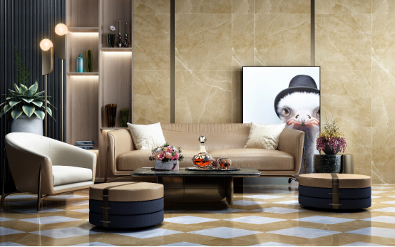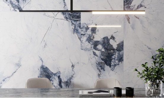 独创55°柔抛工艺,拒绝家庭光污染,超国标5级抗污的55°柔光大理石