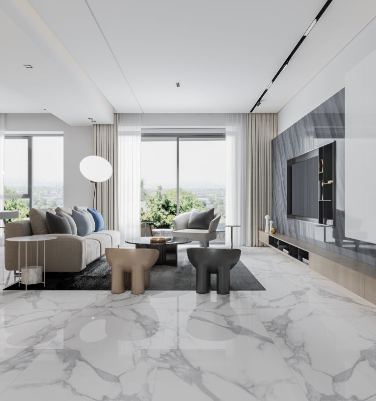 该产品设计灵感取自于意大利名贵石材鱼肚白的纹理,诠释了大理石瓷砖之美,赋予空间尊贵的气质,适合雅致奢华、现代轻奢、新中式等风格。