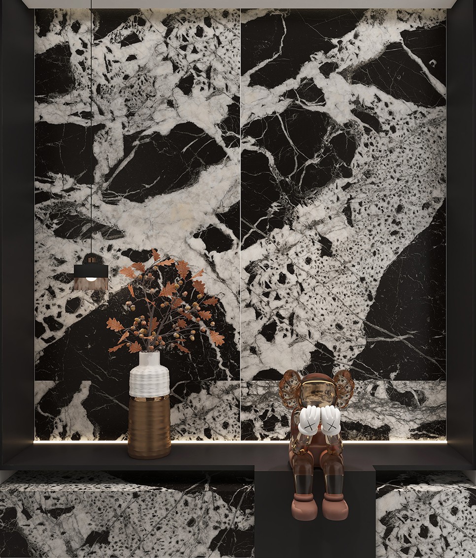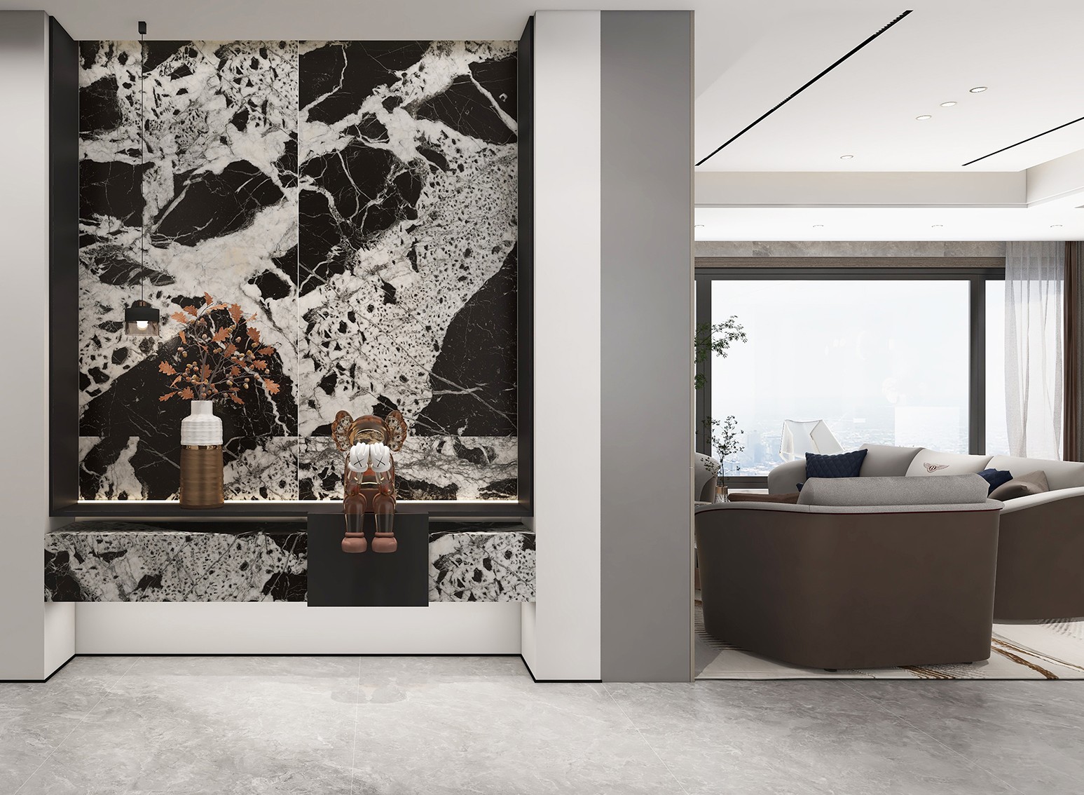 师造化系列以岩板为在载体,泼墨山水画为灵感,大胆随意勾勒壮丽山河景色,延绵千年的水墨意趣,或氤氲或浑厚,细腻质感,自在延伸,灵动自然,作为岩板背景墙,咫尺之间,山水如画,沉淀儒雅逸趣。