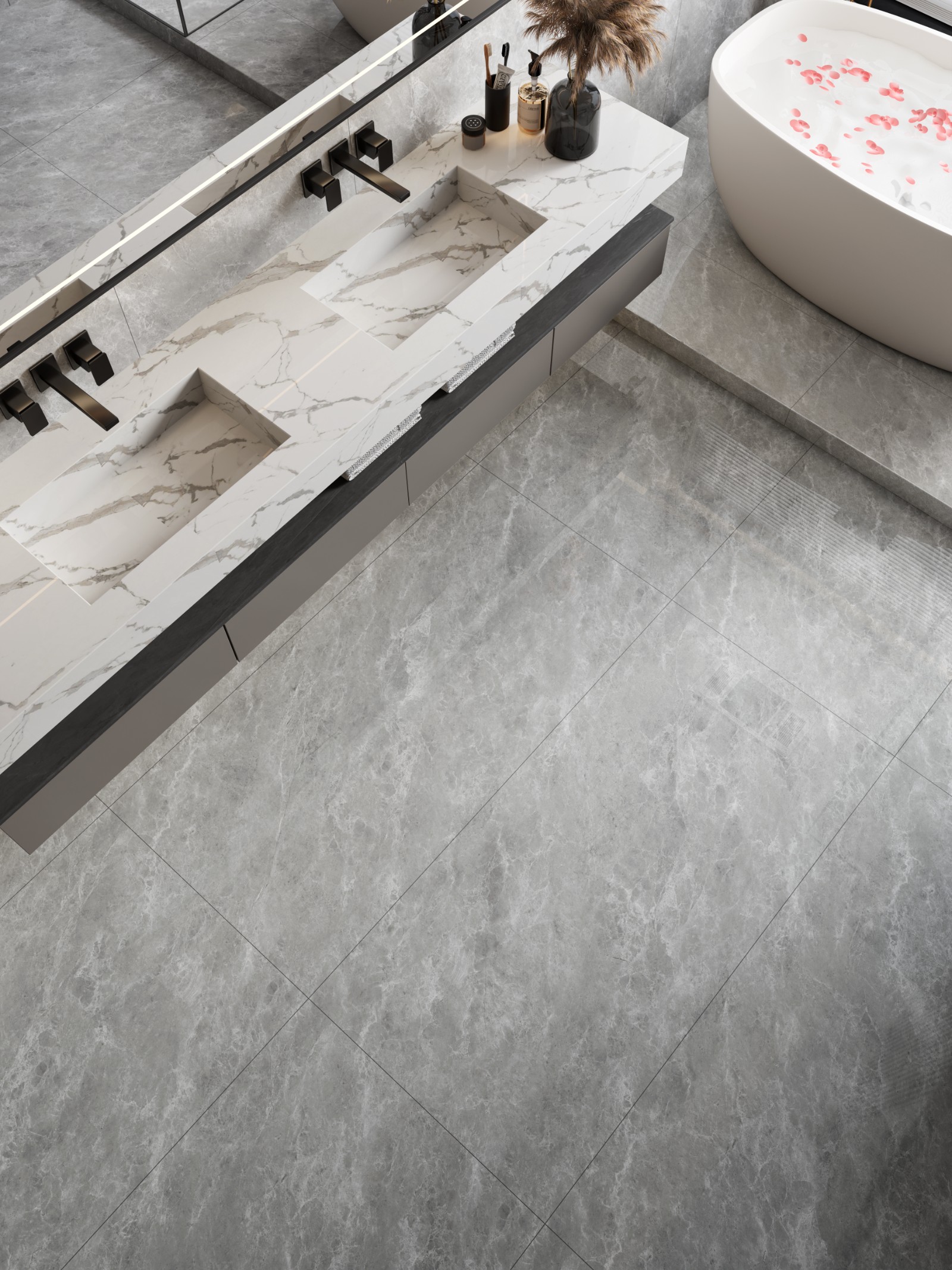 设计灵感来源于乌尤尼盐沼的云海,当 阳光洒在这片无垠的镜面上,云朵在天 空与地面之间自由游走,形成一幅流动 的画卷。我们捕捉了这一瞬的宁静与和 谐,将云海的轻盈与天空的深邃融入瓷 砖设计。每一片瓷砖都如同天空之镜, 反射出室内的光影,为您的空间带来一 份宁静与深远.