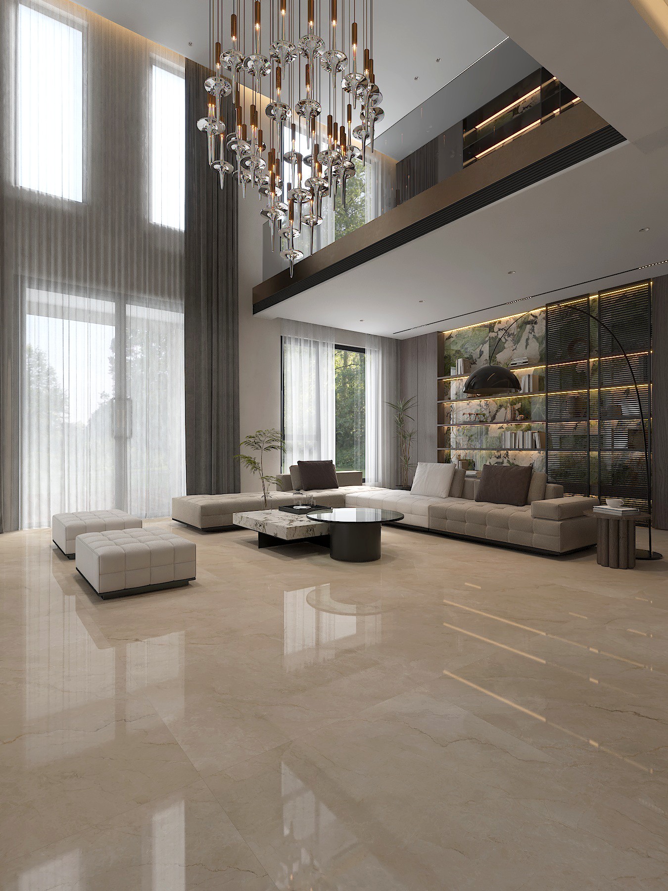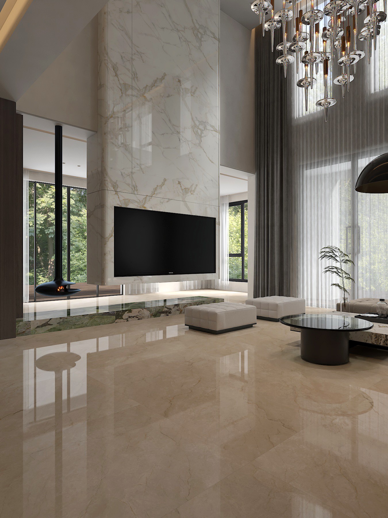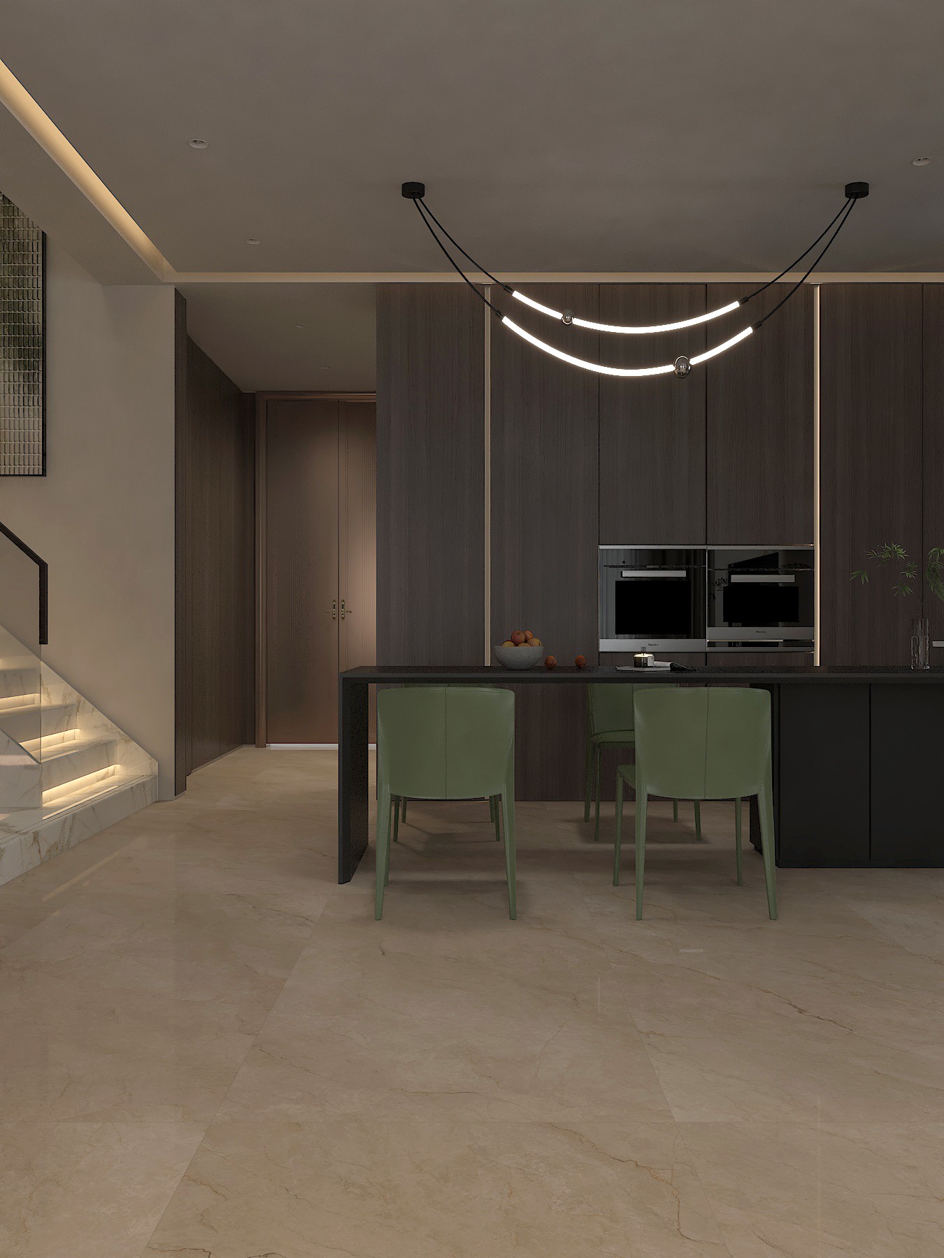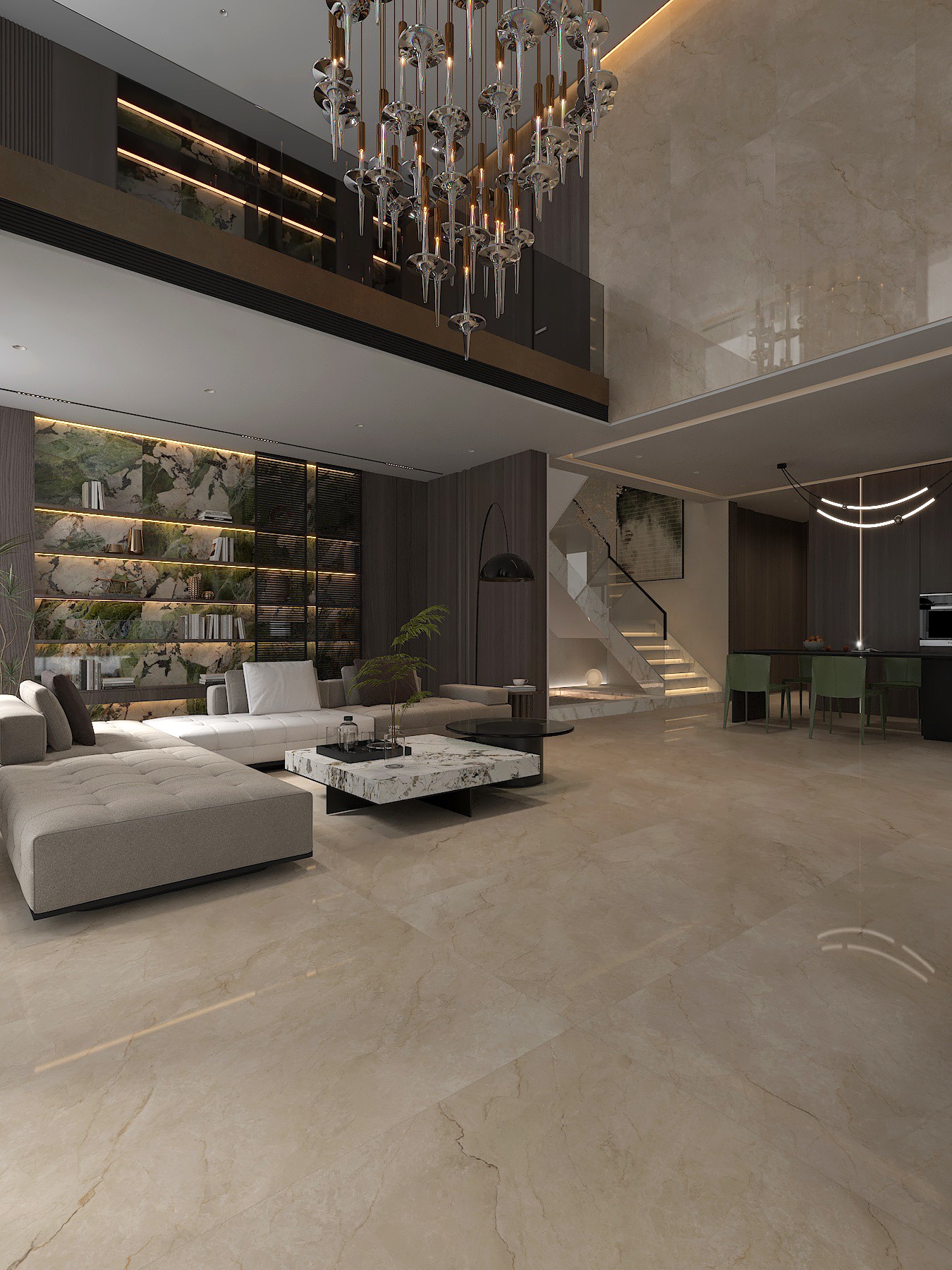 设计灵感来源于乌尤尼盐沼的云海,当 阳光洒在这片无垠的镜面上,云朵在天 空与地面之间自由游走,形成一幅流动 的画卷。我们捕捉了这一瞬的宁静与和 谐,将云海的轻盈与天空的深邃融入瓷 砖设计。每一片瓷砖都如同天空之镜, 反射出室内的光影,为您的空间带来一 份宁静与深远.
