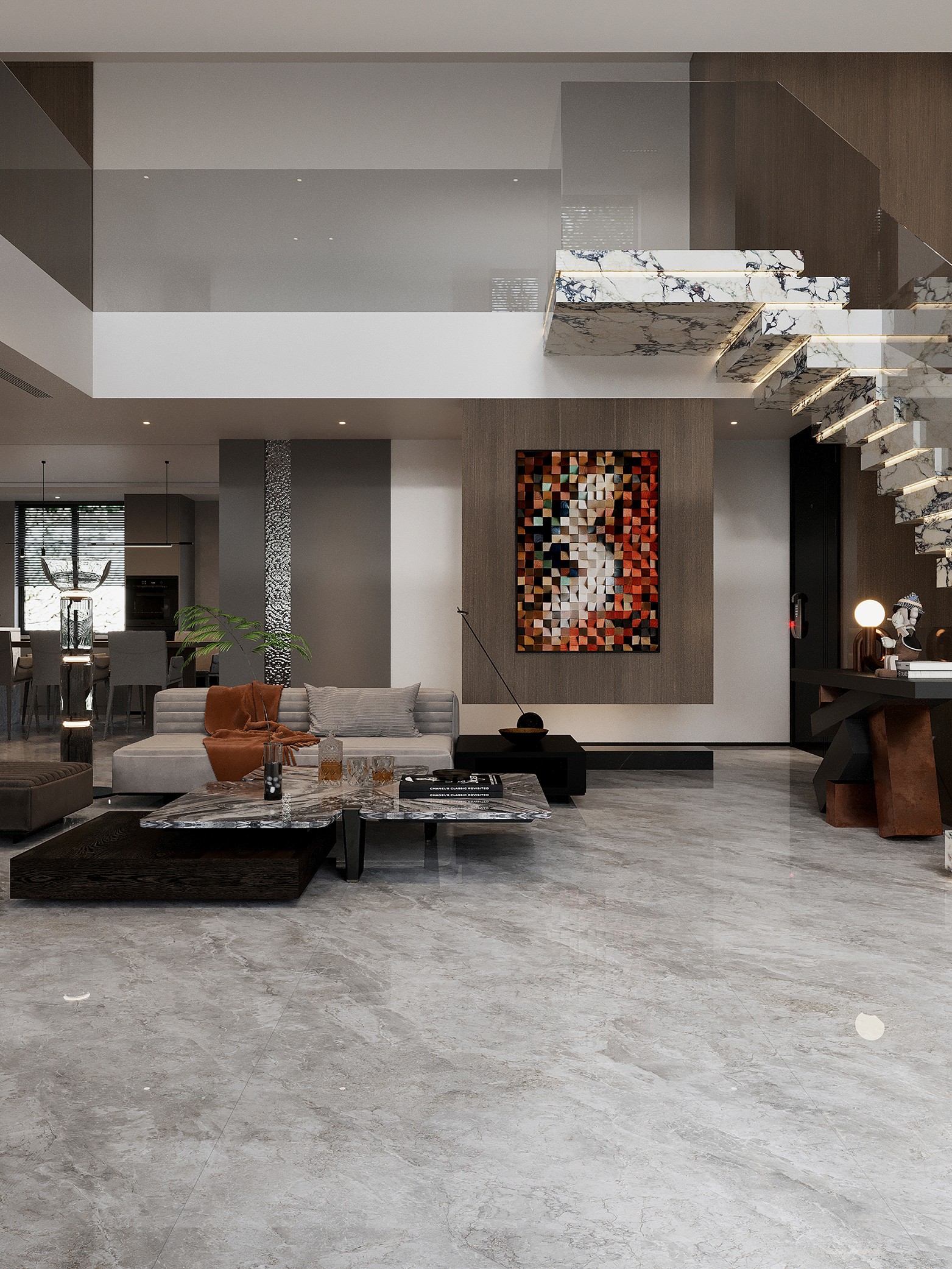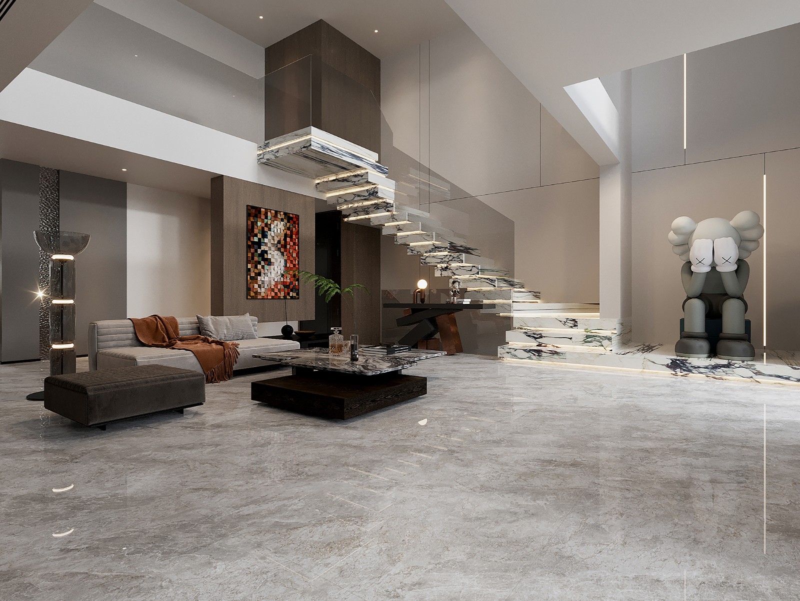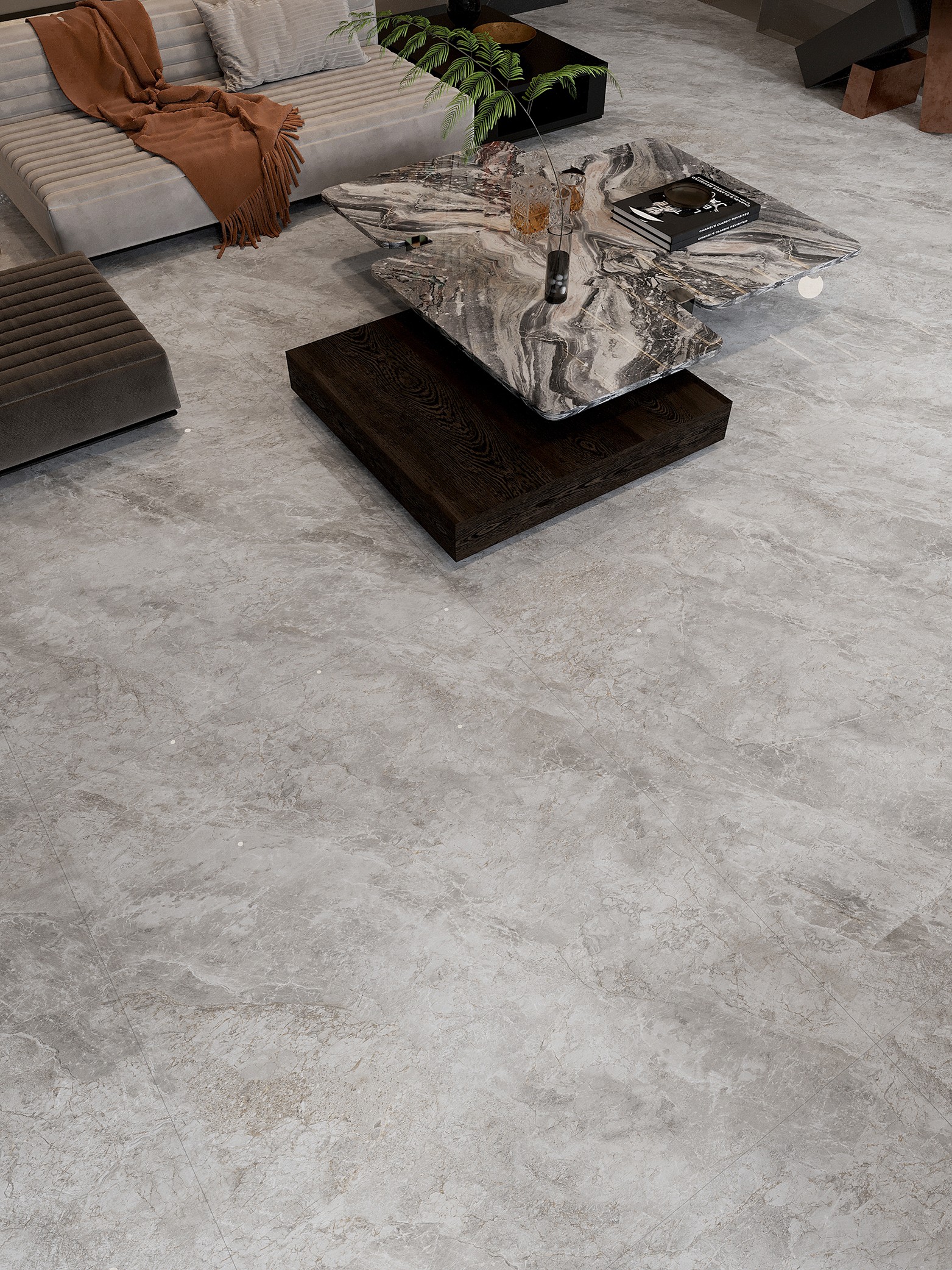 设计灵感来源于乌尤尼盐沼的云海,当 阳光洒在这片无垠的镜面上,云朵在天 空与地面之间自由游走,形成一幅流动 的画卷。我们捕捉了这一瞬的宁静与和 谐,将云海的轻盈与天空的深邃融入瓷 砖设计。每一片瓷砖都如同天空之镜, 反射出室内的光影,为您的空间带来一 份宁静与深远.