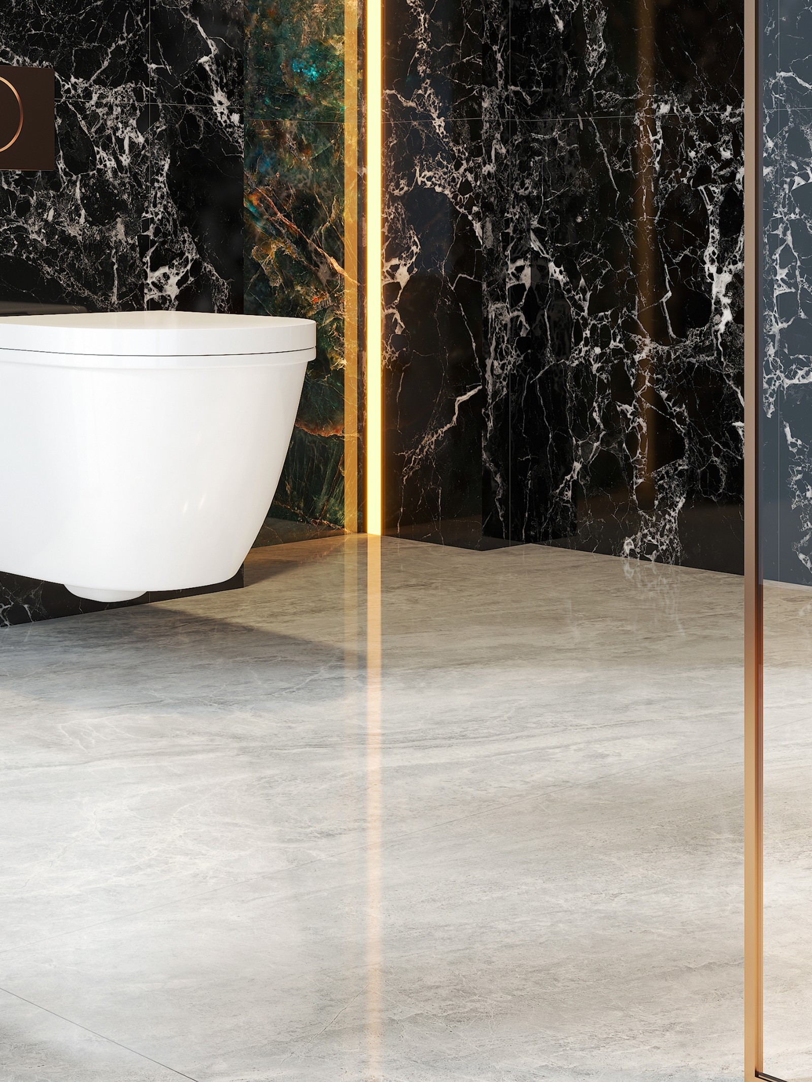 设计灵感来源于乌尤尼盐沼的云海,当 阳光洒在这片无垠的镜面上,云朵在天 空与地面之间自由游走,形成一幅流动 的画卷。我们捕捉了这一瞬的宁静与和 谐,将云海的轻盈与天空的深邃融入瓷 砖设计。每一片瓷砖都如同天空之镜, 反射出室内的光影,为您的空间带来一 份宁静与深远.