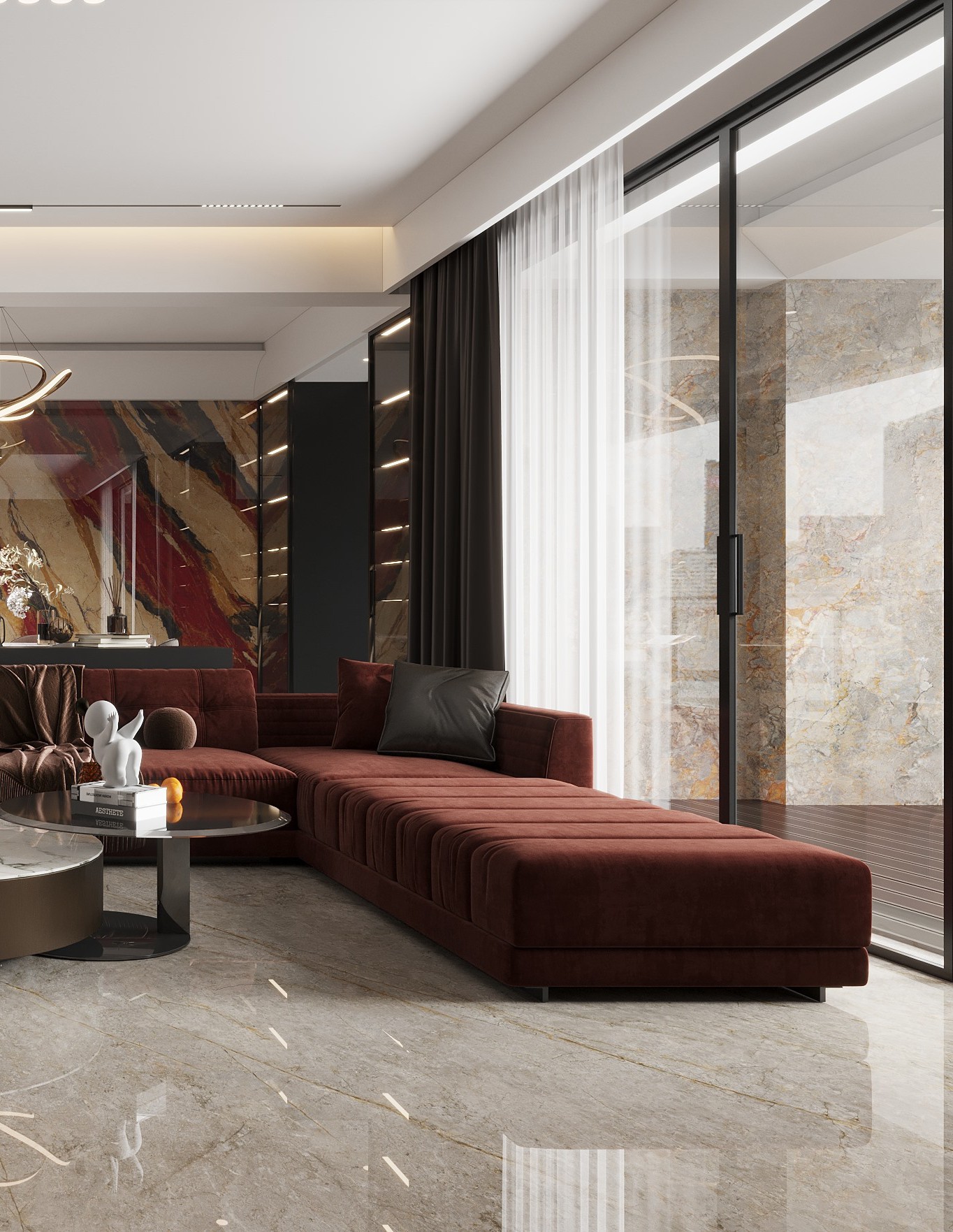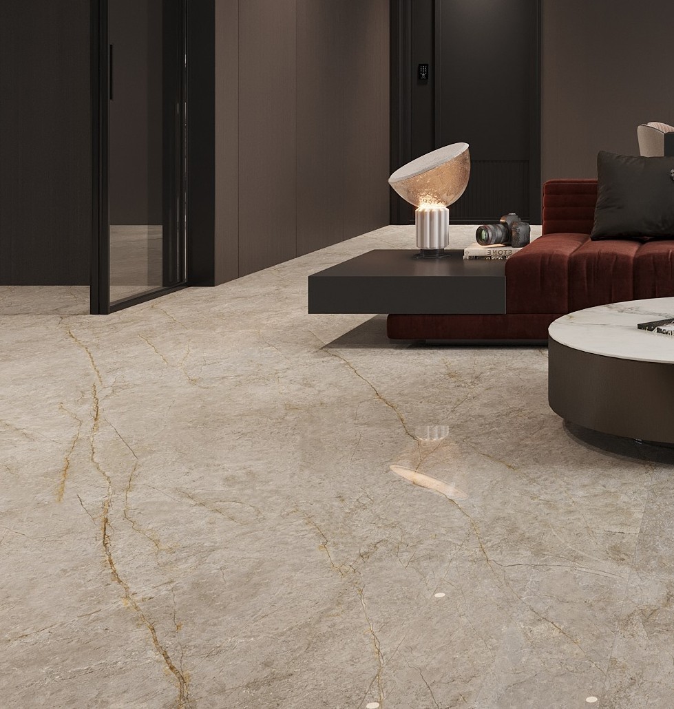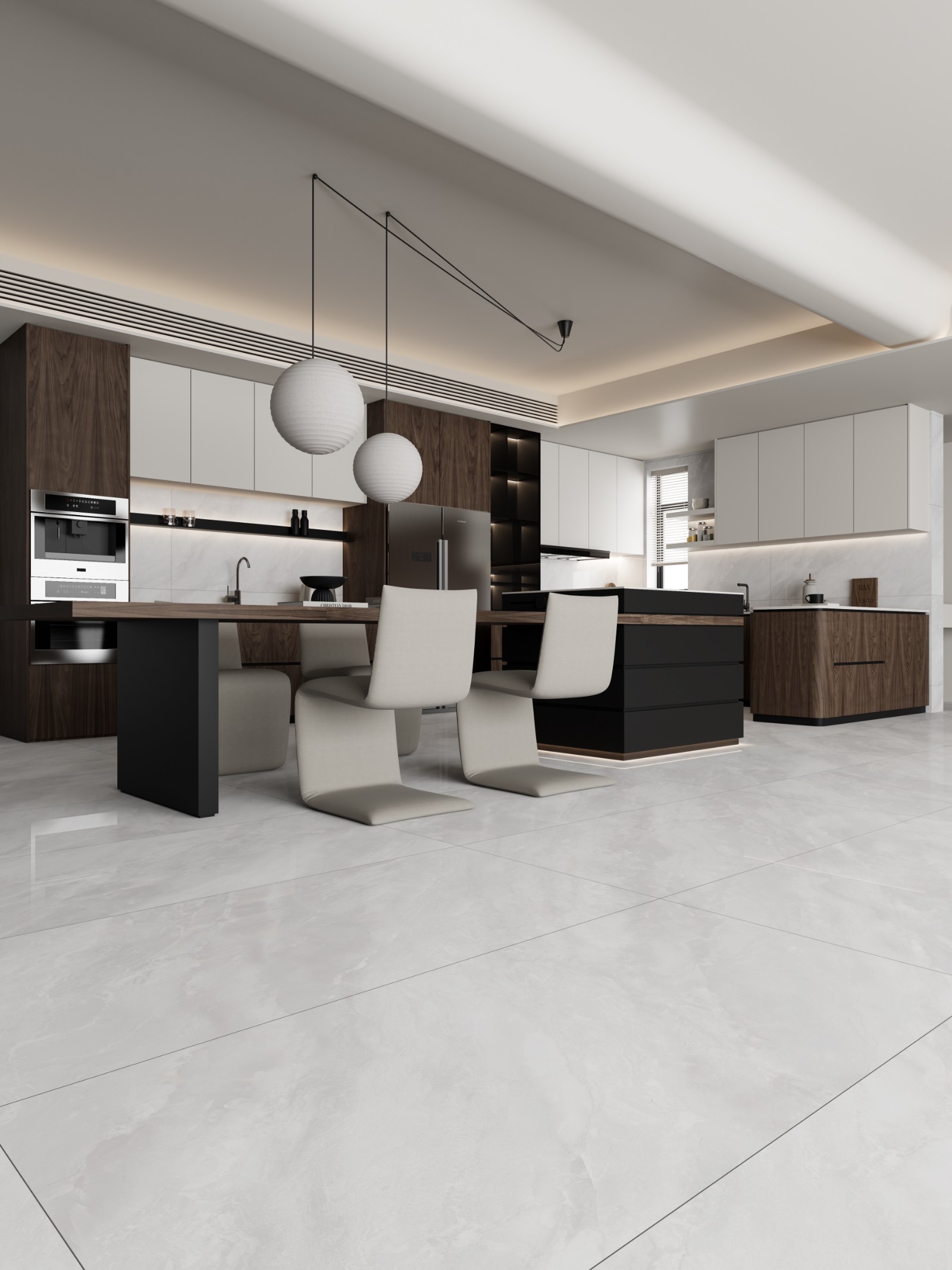 设计灵感来源于乌尤尼盐沼的云海,当 阳光洒在这片无垠的镜面上,云朵在天 空与地面之间自由游走,形成一幅流动 的画卷。我们捕捉了这一瞬的宁静与和 谐,将云海的轻盈与天空的深邃融入瓷 砖设计。每一片瓷砖都如同天空之镜, 反射出室内的光影,为您的空间带来一 份宁静与深远.