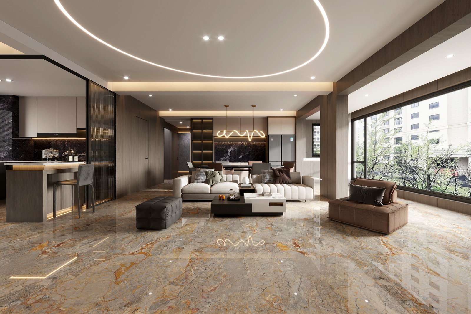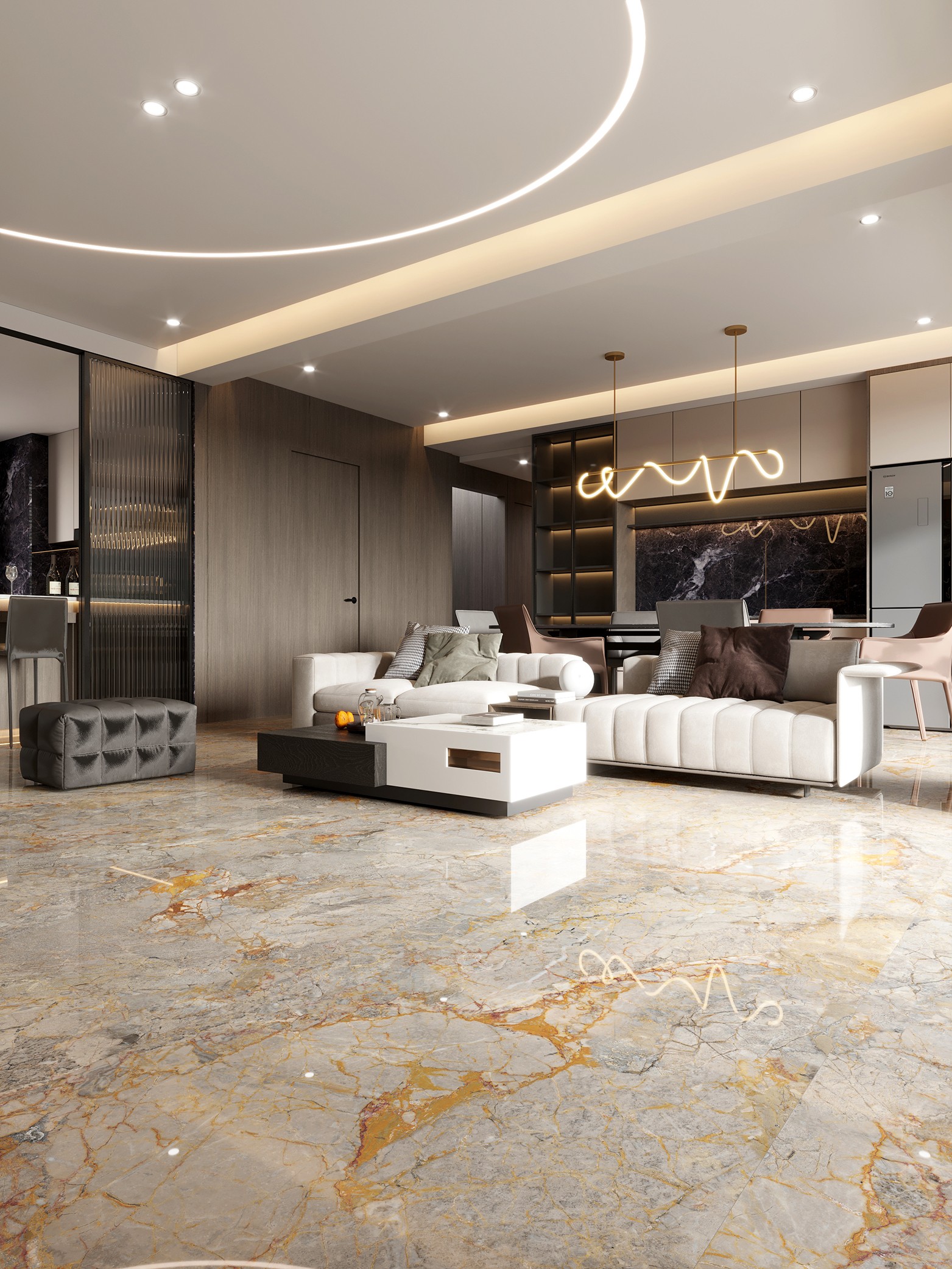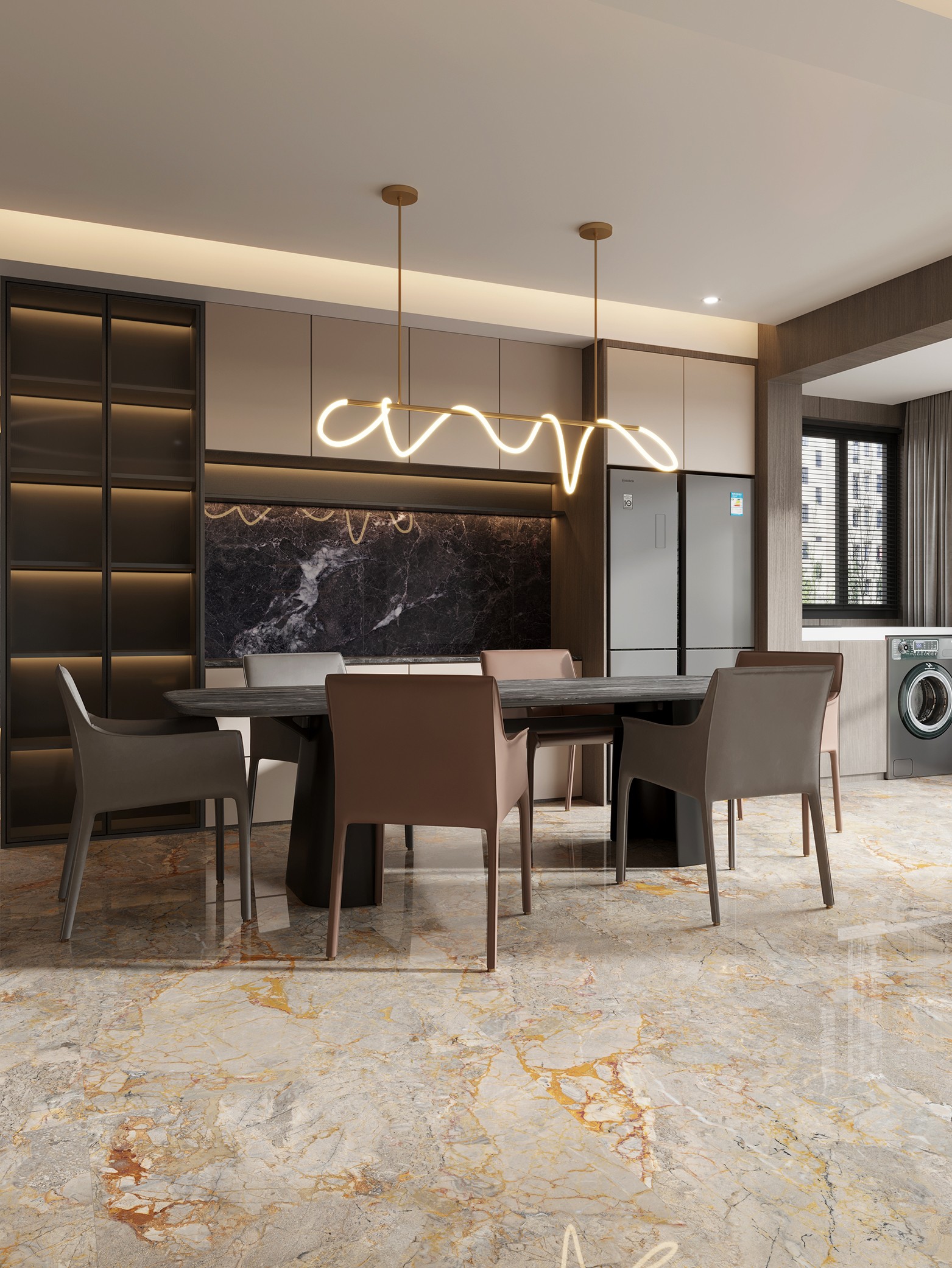 设计灵感来源于乌尤尼盐沼的云海,当 阳光洒在这片无垠的镜面上,云朵在天 空与地面之间自由游走,形成一幅流动 的画卷。我们捕捉了这一瞬的宁静与和 谐,将云海的轻盈与天空的深邃融入瓷 砖设计。每一片瓷砖都如同天空之镜, 反射出室内的光影,为您的空间带来一 份宁静与深远.